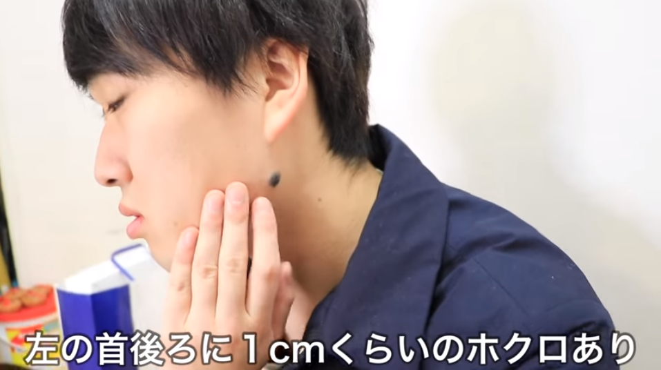 左の首後ろにある1cmほどのホクロが癌化する恐れがあるとして、昔から親に心配されてきたというカンタ。