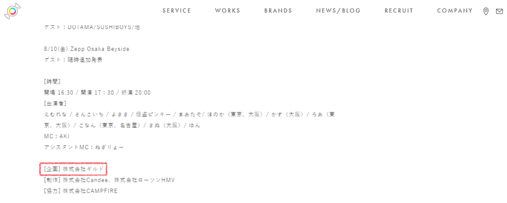 Candeeのホームページを詳しく調べてみたところ、イベント情報欄の企画会社に株式会社ギルドの名前を発見。