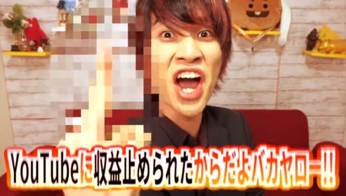 YouTubeから収益を止められたと激怒しながら暴露し、視聴者の間で話題になっている。