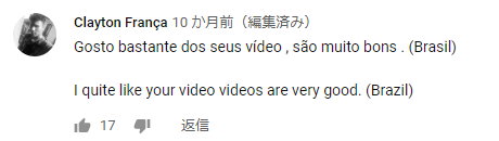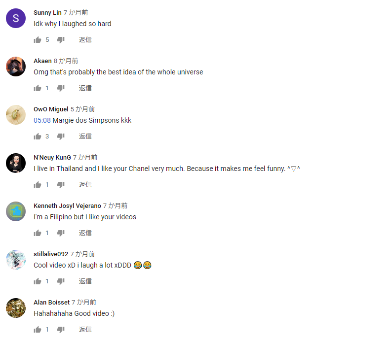 コメント欄には日本語だけでなく英語やポルトガル語、スペイン語など様々な言語で「l0ve」「very good」といった称賛のメッセージが寄せられており、特に2018年以降の動画は本当に日本人が投稿した動画なのか、と思ってしまう程コメント欄が日本語以外の言語で溢れかえる程に。