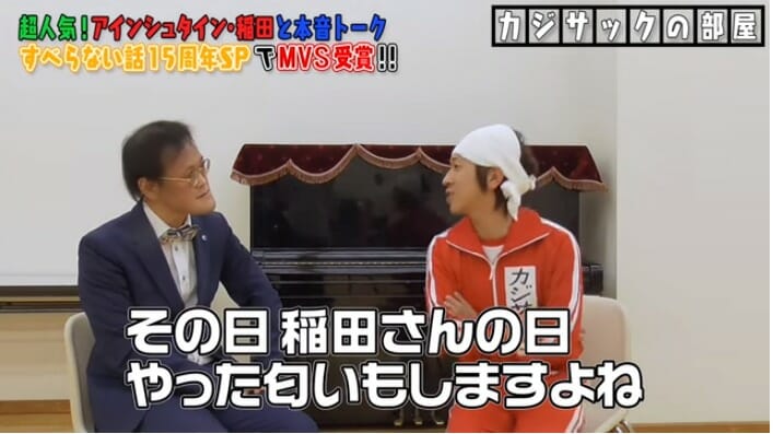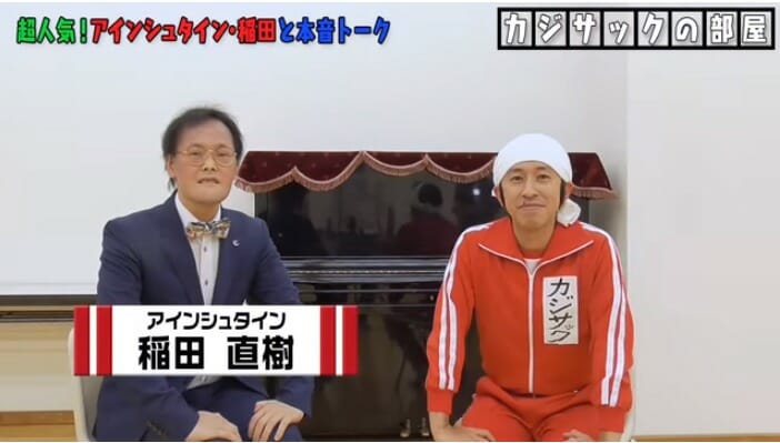 今回の動画でカジサックがコラボした相手は、先日すべらない話15周年SPでMVPならぬMVSを獲得した、お笑い芸人コンビ『アインシュタイン』の「稲田直樹」だ。