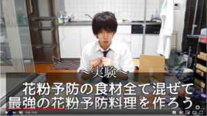2019年3月12日、はじめしゃちょーが「花粉症に効く食べ物全部混ぜて食うwwwwwさらば花粉症wwwww」を公開。