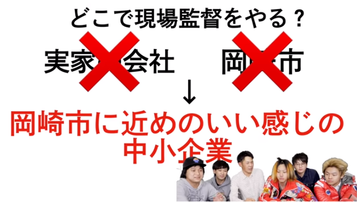 まずYouTubeをしながら、実家の会社のメイン業務である『施工管理』を学ぶ必要があると考え、就職先を探すことに。