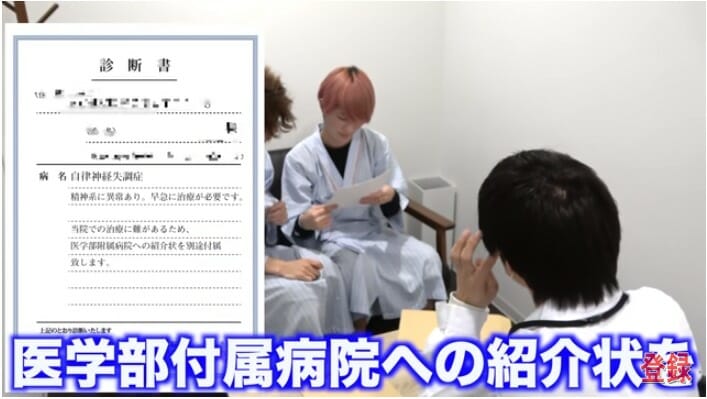 この動画では「何かしら体に悪いところがありそう」なカルマとまるが、病院でそれぞれ検査をしてもらうのだが、なんとそこで、まるが『自律神経失調症』との診断を受けている。
