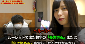 ルーレットではゆんちゃんが5cmカット、ヴァンビが0.5cmのカットになってしまいヴァンビは髪の毛の色をピンクに染める事を決意した。実はヴァンビはショートにしようか迷ってた程髪を切りたかったがルーレットの結果を見て不満を抱いているようだ。