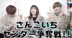 今回、YouTuberをテンポよくどれだけの数を言えるか、ジャンガ、じゃんけんの三本勝負を勝ち抜きセンターを手にしたのはほりえりくであり、一度もセンターになったことがないほりえりくは不安そうな表情をしている。