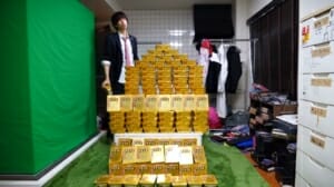 今回はじめは限定発売されている「ペヤングソースやきそば 金粉入り」を100個購入し、トッピングの金粉をかき集めて売るといくらになるのかを検証。
