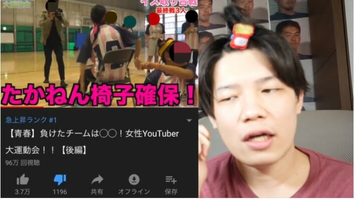 動画中盤から「YouTuber運動会」についての話題になったのだが、その中でも「たかねん」が炎上しているという。