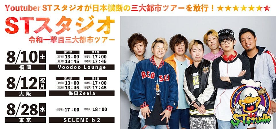 STスタジオが、日本横断の3大都市ツアーとなる「STスタジオ令和一撃目三大都市ツアー」を、福岡・大阪・東京にて開催することを発表。現在既にチケットの販売も開始している。
