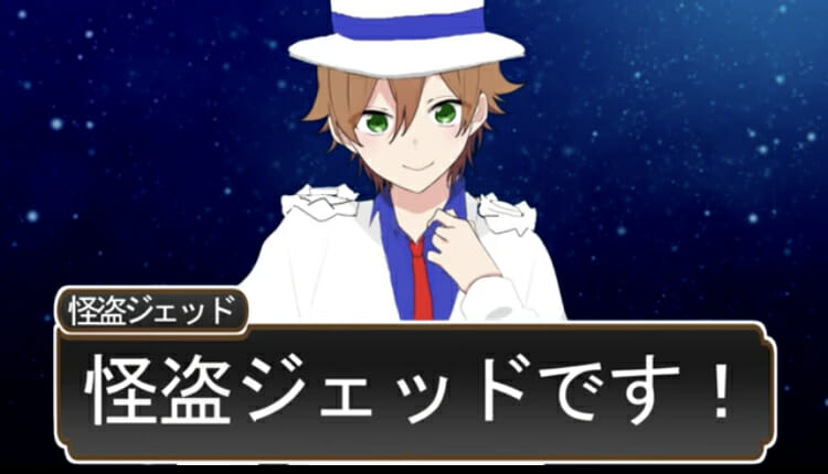 動画では、恋愛ゲーム風な設定のアニメーションで出てきた怪盗キッド(怪盗ジェッド)に扮したジェル。