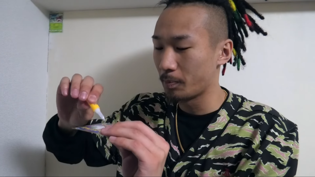 がーどまんが帰ってくるまでに、大事にしているポケモンカードを壁に躊躇なく貼り付けるNY。