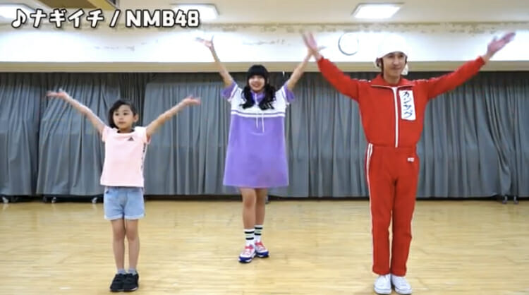 動画では、NMB48のりりりちゃんが大好きなかんちゃんとカジサックが3人でNMB48の「ナギイチ」を踊る様子を練習風景も交えて公開した。