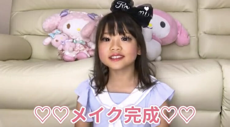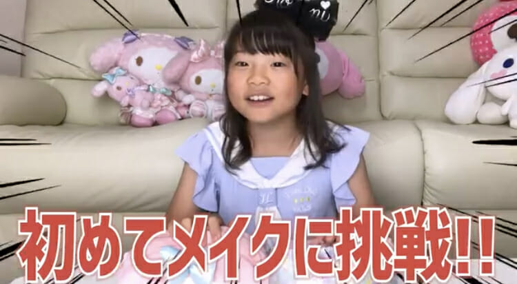 動画では、ママであるちいめろに借りたメイク道具を使って初メイクに挑戦する姿を公開した。