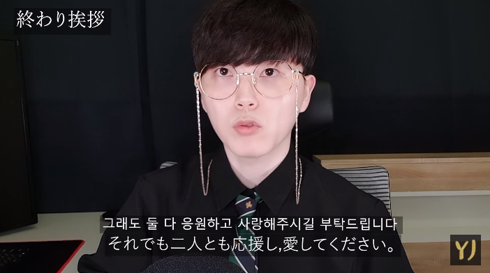 YJカップルを見守ってくれた視聴者に向け、付き合ってからのお互いの努力や苦労を語り、喧嘩や浮気での別れでないこと、ポテとミントへの誤解についてしっかりと説明している。