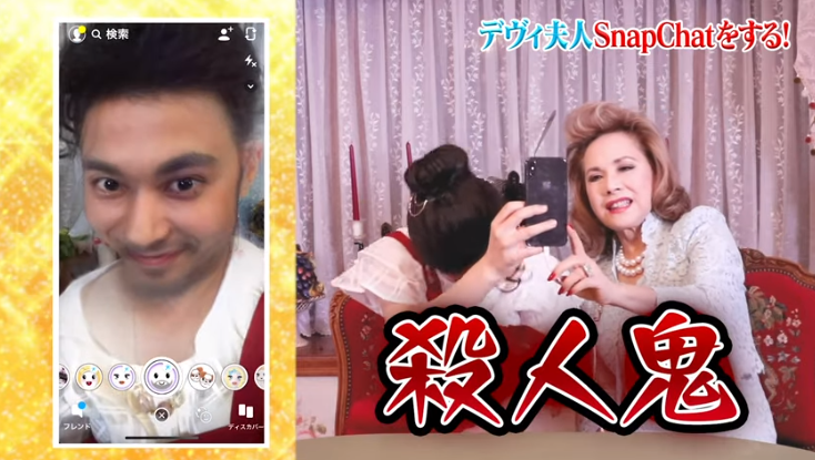 ゲストとしてデヴィ夫人のご友人として紹介された口笛奏者のマリナが登場し、Snapchatの様々なフィルターで遊び倒すという企画。