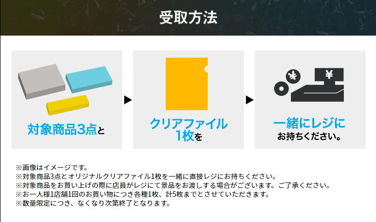 今回のキャンペーンの中で、現在解禁されているうちの1つが「先着・数量限定でもらえるオリジナルクリアファイル」だ。