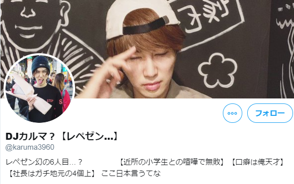 また、現在彼のTwitterは名前が「DJカルマ?【レペゼン…】」に変更されており、益々レペゼン地球への加入にリアル感が・・・。