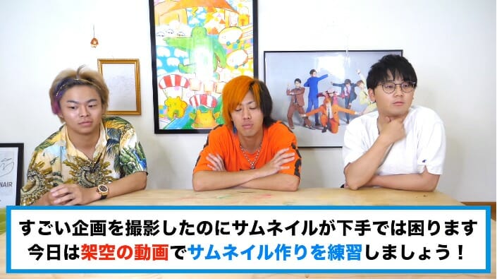 今回の企画は、サムネイルの上達を目的とした「架空の動画でサムネイルを作ろう」という企画だ。