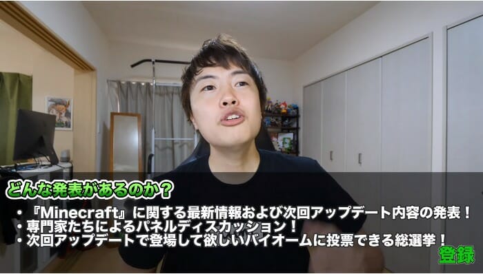 イベント内では最新アップデートの内容ほか、マインクラフトに関する様々な情報が発表される。