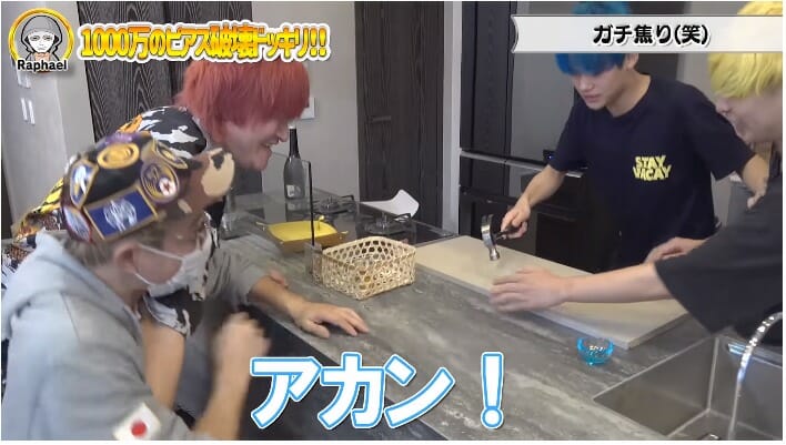 今回の企画は、禁断ボーイズがラファエルの1000万円のダイヤのピアスを破壊しちゃうドッキリだ。