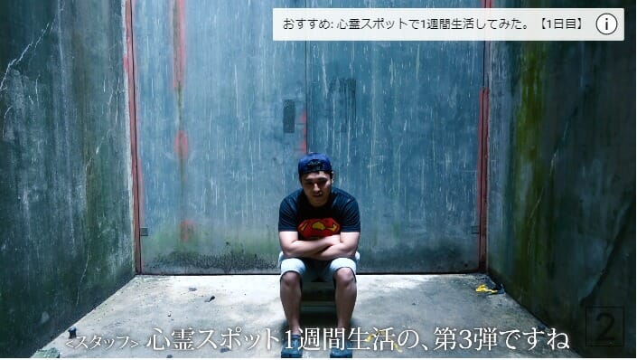 2019年07月29日、だいにぐるーぷが「ビビリが心霊スポットで1週間生活してみた【1日目】」を公開した。