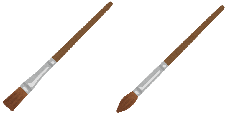 塗りつぶし部分には平筆、細かい部分には丸筆がおすすめ。顔や肌に触れるとチクチクするので、バサバサした素材ではなく柔らかい材質の筆をチョイスしよう。