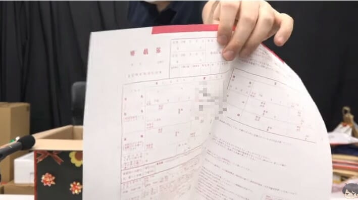 ファンの名前・住所が書かれた婚姻届・婚約指輪