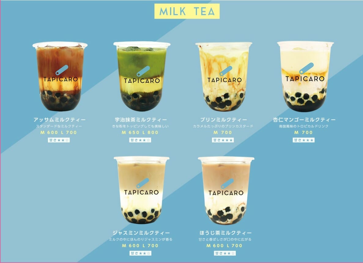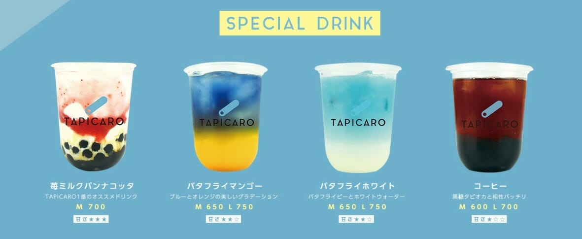 「TAPICARO(タピカロ)」で購入できるドリンク一覧