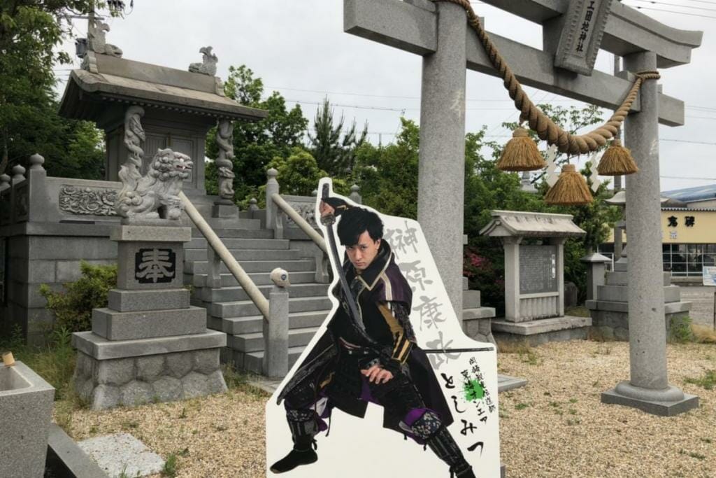 社殿まで石造りで非常に珍しい神社「石工団地神社」には「榊原・としみつ・康政」パネルがかっこいいポーズで佇んでいるぞ。