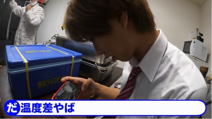 だいちぃが学校給食のボックスなどを運んでくると、さすがにはじめしゃちょーも「がっつりやなー」とコメントしたものの、「給食食うぞー!」と元気に企画の振りを言っただいちぃに対し、はじめしゃちょーは反応なくスマホゲームをしていた。