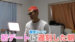 スカイピースの二人は坊主になった今、モーニングルーティンに髪のセットがないのでその分早く準備が出来るのではないかと考え、「初デートに遅刻した朝」という設定でモーニングルーティンを行いどっちが先に準備出来るかという企画を行った。