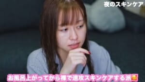 歩乃華は家に帰ってからのナイトルーティンを公開した。顔にある粉瘤(ふんりゅう)を取った歩乃華は化粧が出来ないとのことで、動画の冒頭からスッピンだった。また使用しているスキンケア商品等を紹介してくれた。