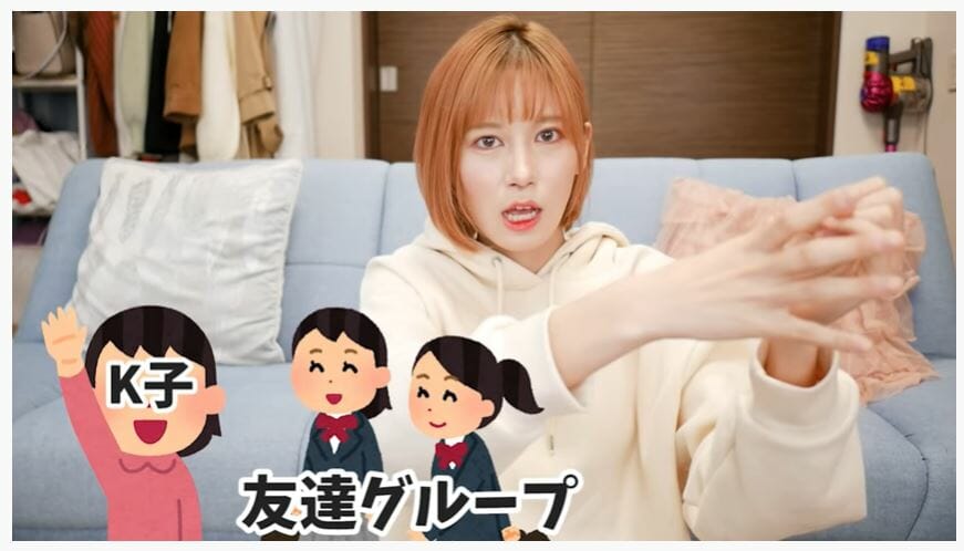 動画では中学時代のゆきりぬの話題になり、当時のゆきりぬの性格について、「ヤンキーというより不登校だった」と語った。そんなゆきりぬが、中学2年生になった時に出会ったK子について話した。「最初はすごくいい子だった」と述べたが、それは最初だけだった様子。実はゆきりぬの悪口を話していて、ゆきりぬを嫌っていることが判明した。