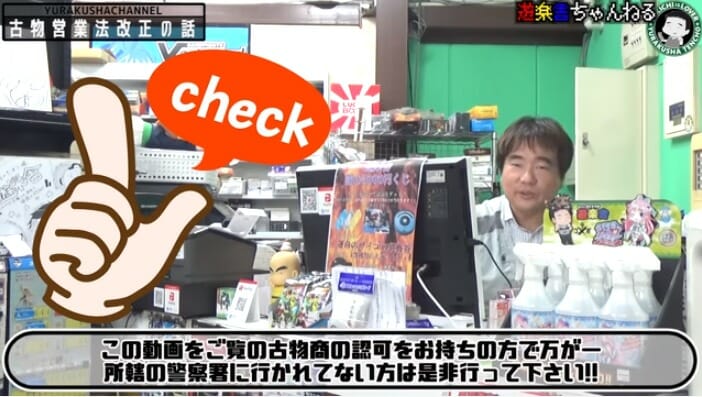 既に手続きを済ませている店長は上記の内容を話したうえで、「古物商の認可を持っているけどハガキが届いていない人」「認可を取った後の住所変更を届け出ていない人」「はがきが来たけど期日がまだだからと放置している人」が視聴者の中にいたら、早めに警察署で手続きをしてほしいと呼びかけていた。