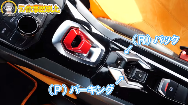 しかし、ランボルギーニの構造が普通の車と少々異なり、更にラファエルがかなり疲労していたことから間違えてパーキング(P)ではなくバック(R)にギアを入れてしまい、そのまま後ろに停車していたタクシーにぶつかってしまったのだという。