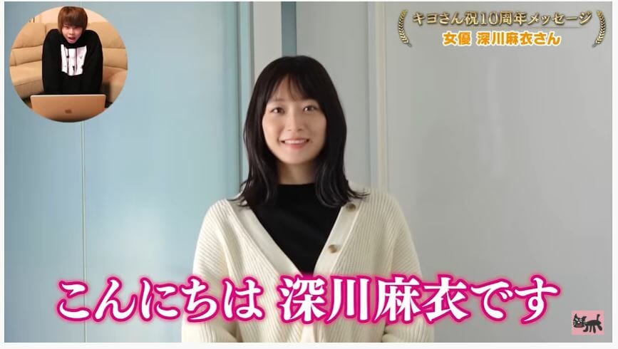 動画の中で深川麻衣が出てくると、キヨ。は「 まいまいじゃん!」と叫び、かなり興奮した様子を見せた。
