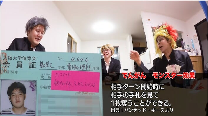 財布に入っているカードだけで遊戯王バトルをするはなおとでんがんの姿が、視聴者の間で話題になっている。