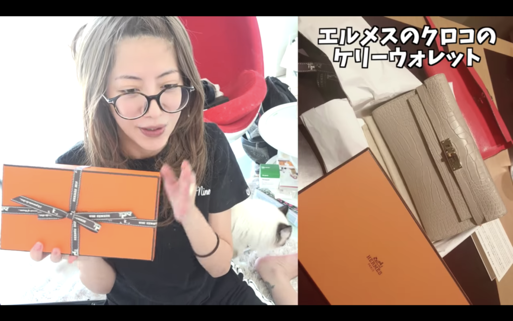 かねこあやがてんちむへ”200万円”もする、エルメスの『ケリーウォレット』をプレゼントした。てんちむは感動のあまり泣いてしまう。