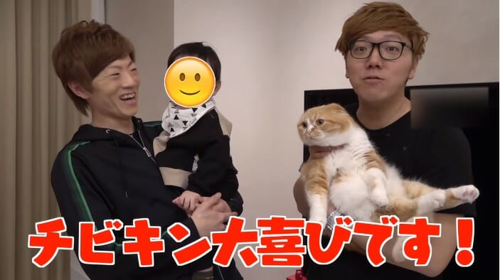 今回の動画では、チビキンの息子である「チビキン」(※撮影時1歳7か月)と、ヒカキンの愛猫「まるお」「もふこ」が、ヒカキン宅にて久々の対面を果たした。