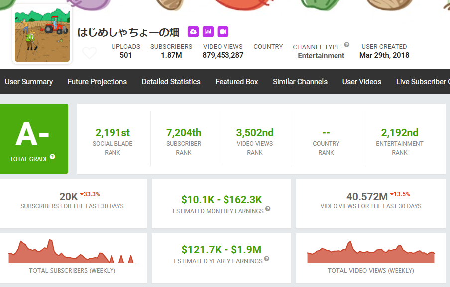 現在、登録者が爆増中の「はじめしゃちょーの畑」、そしてサブチャンネルである「はじめしゃちょー2(hajime)」での予想年収をメインチャンネルの予想年収にプラスすると・・・?