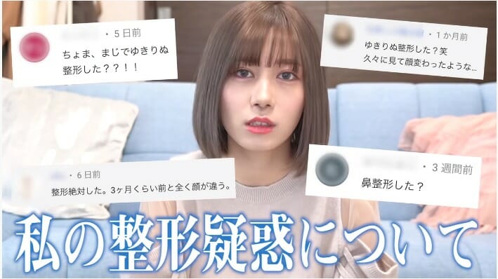 2019年12月29日、ゆきりぬが「整形疑惑について。」を公開した。