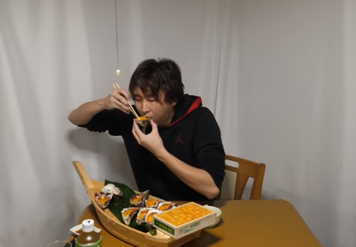 夢中で牡蠣を頬張るかねこ氏(出典:youtube.com)