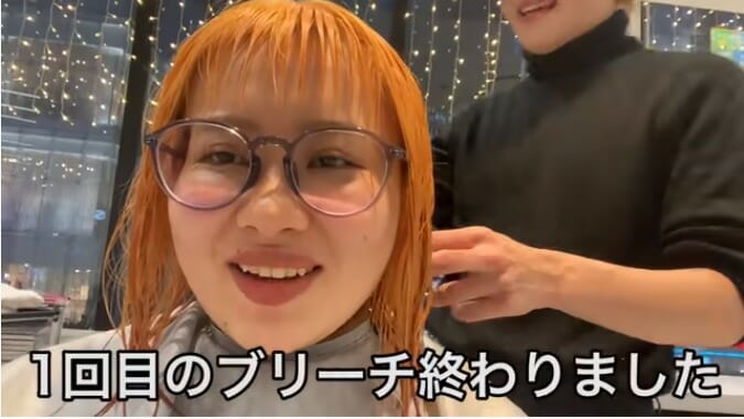 「イメチェンしたい」と冒頭で嘆いたエミリンは、今までしたことのない髪色に挑戦すべく、人生初のブリーチを2回施してもらい、どんどん明るい髪色に。