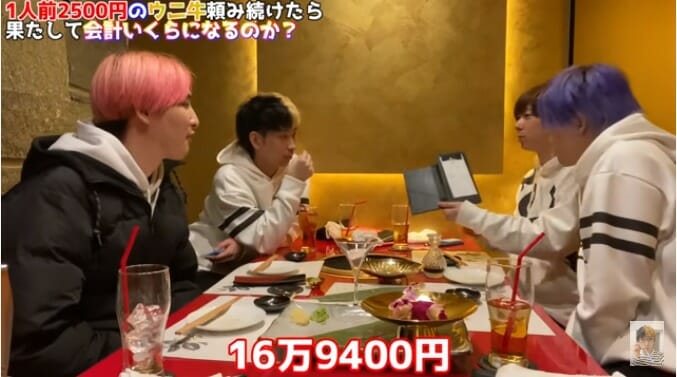 ヒカルら4人が1皿2500円の寿司を限界まで食べ続けるという動画内容と、その会計結果が視聴者の間で話題になっている。