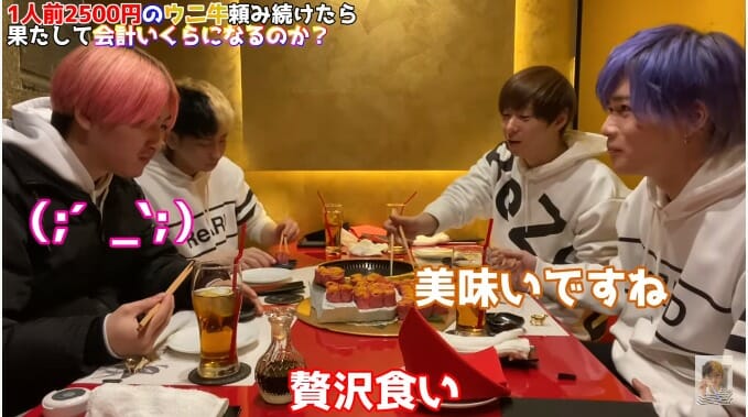 ヒカルら4人が1皿2500円の寿司を限界まで食べ続けるという動画内容と、その会計結果が視聴者の間で話題になっている。