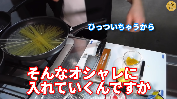 慣れた手付きでパスタを茹で始める宮迫。料理だけでなく、今回の動画は天然素材時代の話題や引っ越しの話題などのトークにも要注目だ!