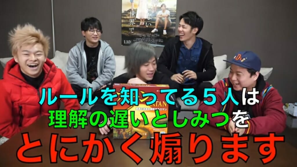 全員が初心者という設定でカタンというテーブルゲームをプレイするが、実は初心者なのはとしみつだけで、他は全員経験者という今回のドッキリ。サムネイルからとしみつを「初心者(バカ)」と煽っており、視聴者からは「サムネイルに悪意を感じるw」との声も上がっている。