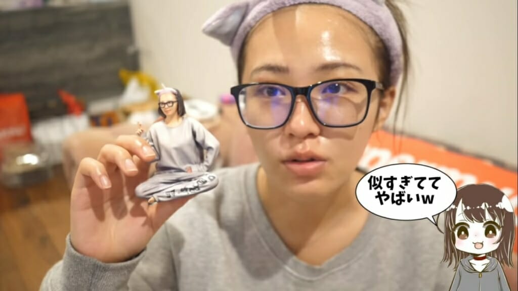 てんちむは、すっぴんにジャージという恰好で撮影に臨み、1か月後には、世界に1つだけのてんちむフィギュアが無事に完成した。手元のタバコまで再現されており、てんちむ本人も「(フィギュアに)しゃべりかけたい」と出来栄えに満足した様子だ。