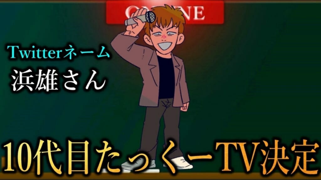 新たにたっくーTVの立ち絵を募集する今回の企画で、みごと10代目に選ばれたのは「浜雄さん」の作品だった。素材を生かした絵や愛嬌のある表情、頭身のバランスが評価された。