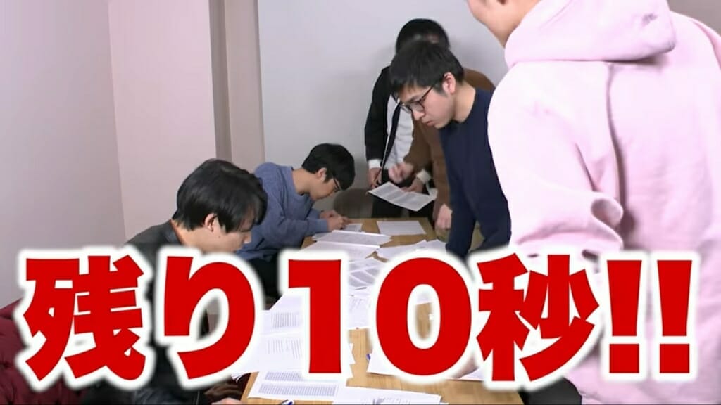 2時間という制限時間の中でセンター試験の満点を目指す東大生7人。教科ごとに担当を決め、分からない問題はすぐに聞くとしてセンター試験の問題に挑戦。
